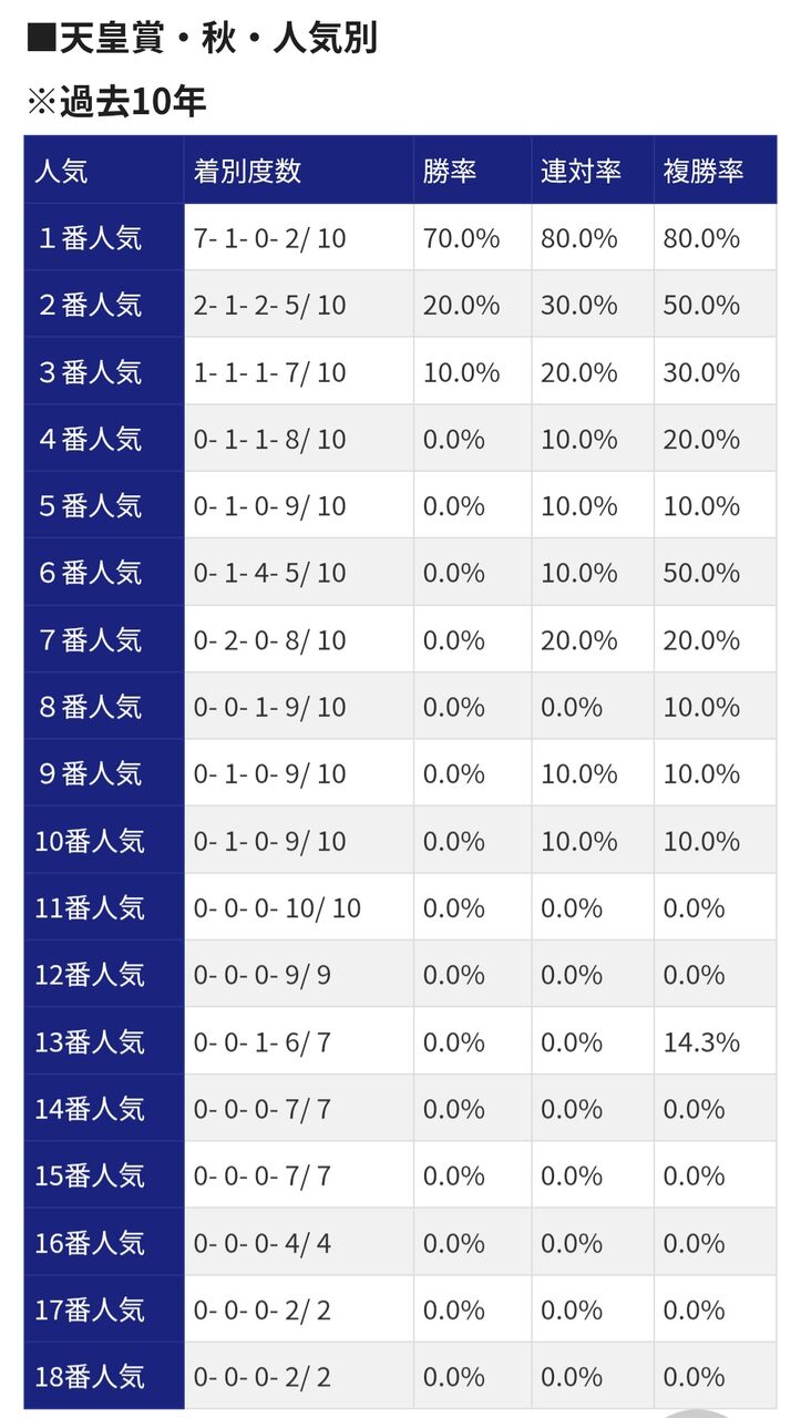 上位人気が非常に強いのが特徴。特に1番人気は過去10年 複勝率約80%。